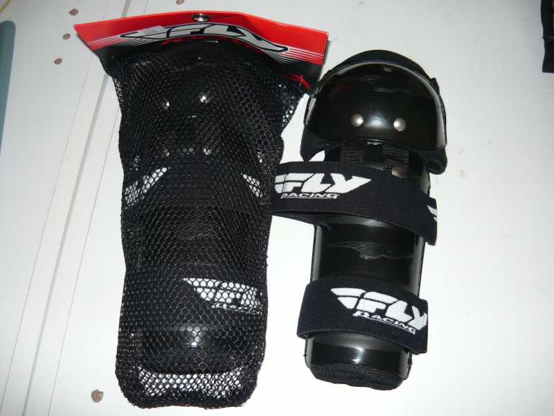 CHrániče kolen Fly v barvě černé. Mají nárazuvzdorný plast, dva seříditelné upínací pásky. Cena 400 kč